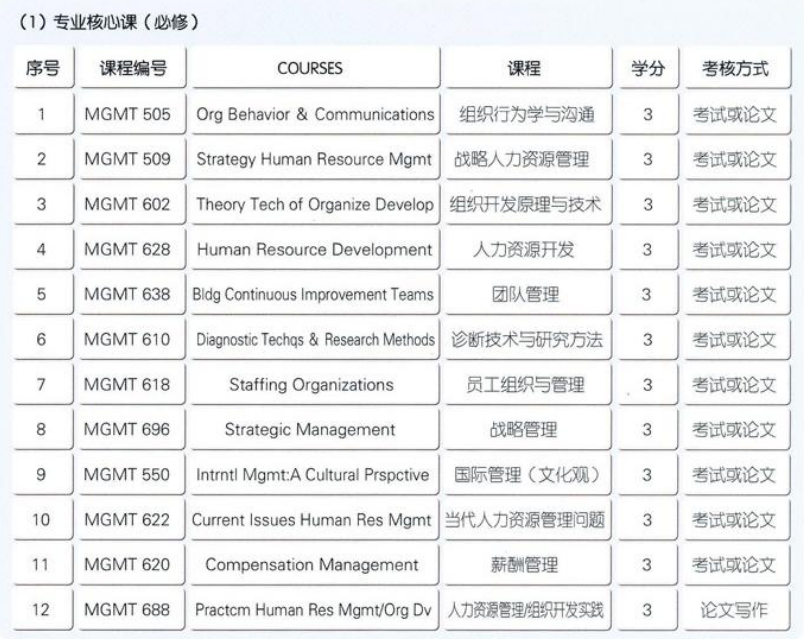 人力资源管理硕士班学员,需要完成以下学习环节: