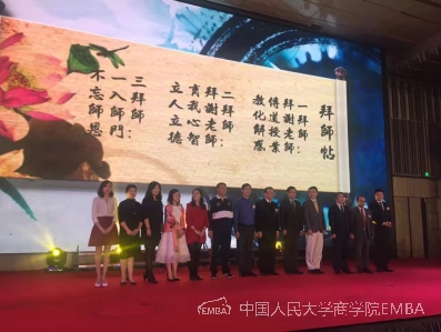 新年晚会在全体师生齐唱人大校歌中拉开序幕。随后,举行了隆重的拜师仪式。深圳校友表达了对人大商学院老师的感激之情。